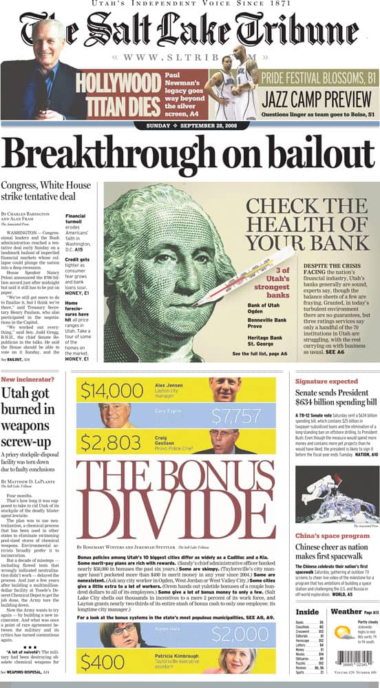 Salt Lake Tribune front page